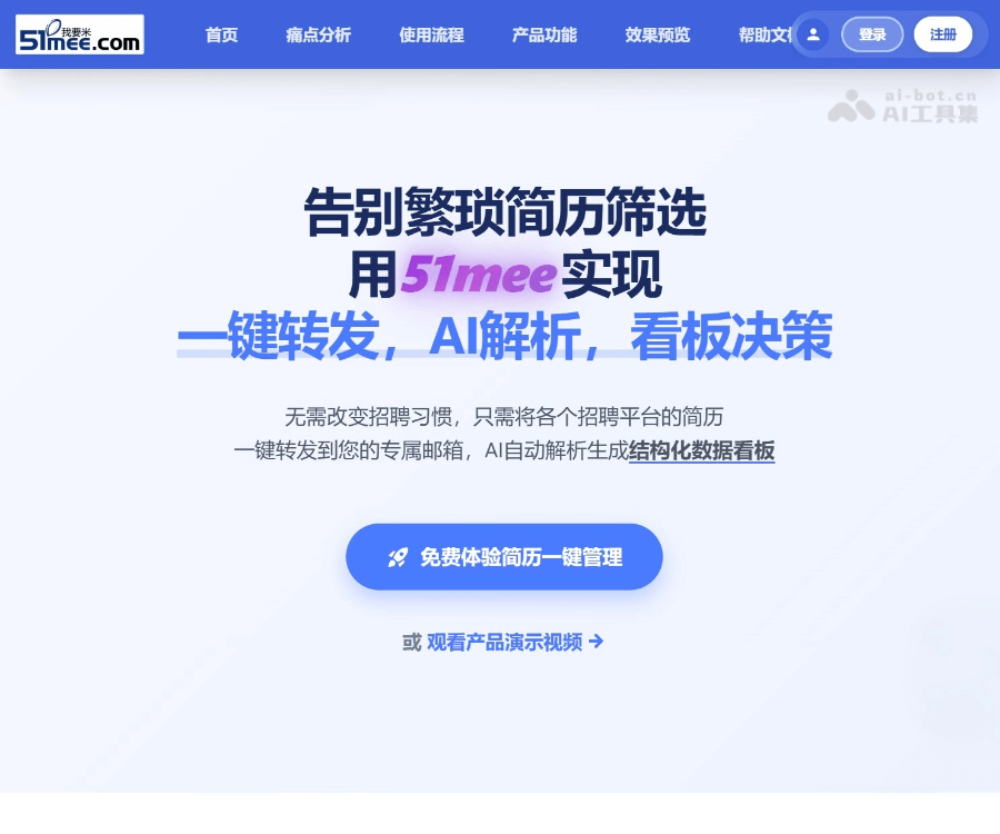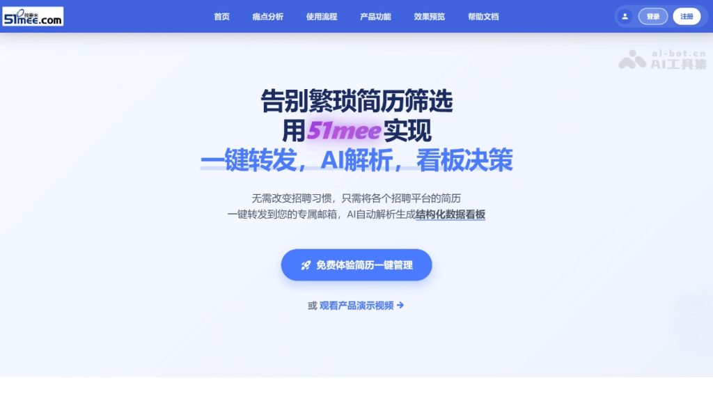 51mee(我要米) 是南京浅度求索科技推出的AI招聘管理工具,专注于提升招聘流程的效率和智能化水平。通过专属邮箱接收简历,利用 AI 技术自动解析多种格式的简历(如 PDF、图片等),生成结构化的数据看板。51mee支持智能去重、多维度筛选和团队协作,能快速定位目标人才。51mee 提供企业级数据安全保障,简历文件加密存储,用户数据独立隔离。优势在于无需改变招聘习惯,可实现全平台简历的统一管理,极大地提高了招聘效率。