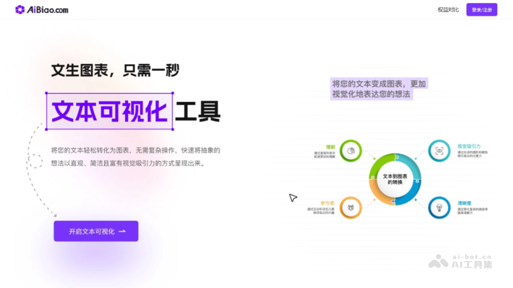 AiBiao(原VisDoc)是AI文生图表工具,基于自然语言处理(NLP)技术,快速将文本内容转化为直观的图表,支持生成柱状图、折线图、饼图等多种类型。AiBiao界面简洁,操作简单,适合初学者快速上手。AiBiao智能文本分析功能支持自动识别文本中的关键信息,生成符合用户需求的图表。AiBiao提供丰富的自定义选项和多种输出格式,适用于数据分析、报告撰写、商业演示和教育等多个领域,能有效提升信息传达的效率和效果。