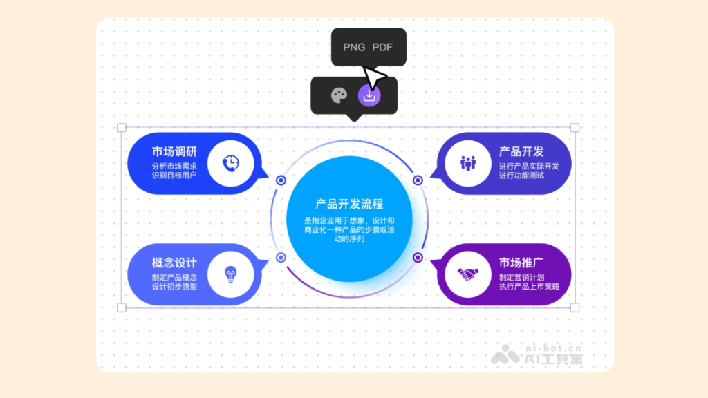 - 支持多种输出格式:支持图片以PNG、SVG、PDF等多种输出格式。