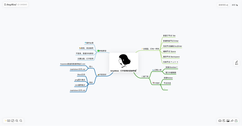 - 创意构思与头脑风暴:在创意发想和头脑风暴过程中,借助 AmyMind 快速记录灵感和想法,梳理创意脉络,激发更多创意火花。