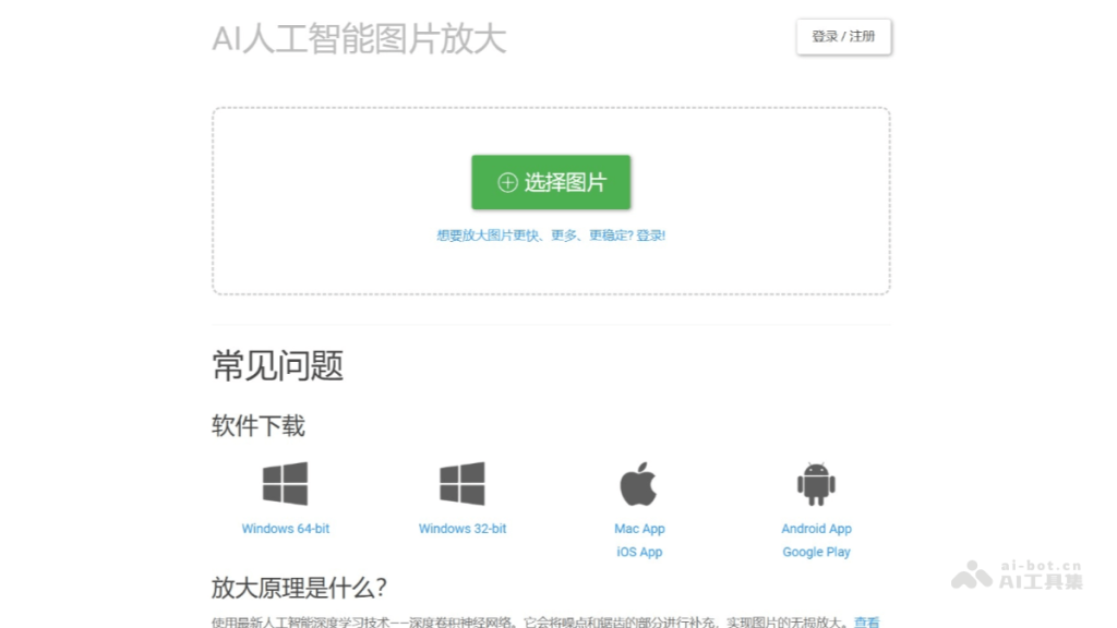 - 上传图片:点击首页的“选择图片”按钮,从本地文件夹中选择需要放大的图片。