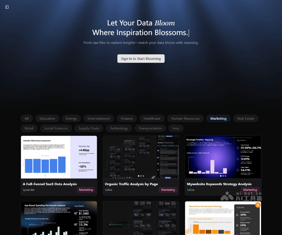 - 访问官网:访问Bloom官网 https://bloom.powerdrill.ai/,完成账号注册和登录。