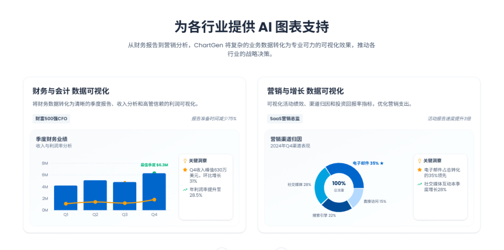 - 即时生成:从数据上传到图表生成仅需 30 秒,快速满足用户需求。