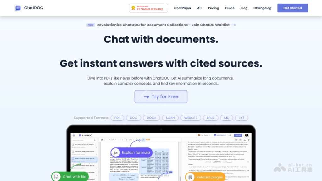 - 跨文档查询:上传多个文档,提问时 ChatDOC 从多个文档中整合信息回答。
