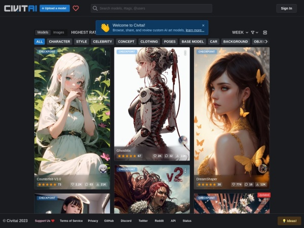- 活跃的用户社区:Civitai 提供了一个充满活力的社区,每月超过1000多万名艺术家和 AI 爱好者在这里交流、协作和分享他们的创作