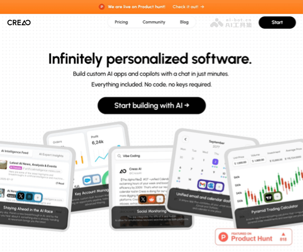 - 通过描述构建应用:用户只需描述需求,CREAO的AI会处理后端、数据库和托管等复杂基础设施,无需编码即可构建完整应用。
