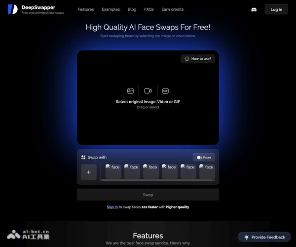 DeepSwapper是免费的在线AI换脸工具,用户能轻松上传图片或视频,实现快速且逼真的人脸互换效果。DeepSwapper支持JPEG、PNG、WEBP、GIF、MP4等多种格式,无论是单人还是多人换脸,都能提供自然且高质量的结果且无水印输出。DeepSwapper还提供了商业API服务,适用于更广泛的应用场景,如社交媒体、电影制作、虚拟现实等。
