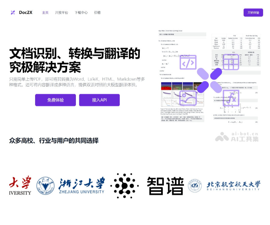- 在线使用与集成:用户可以直接在网页上使用Doc2X,或者通过API集成到自己的系统中。