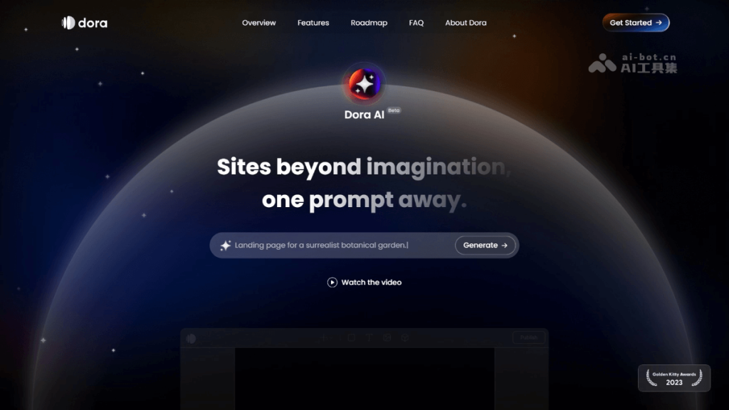 - 生成网站:点击“Generate”按钮,Dora AI 根据提示生成初步网站设计。