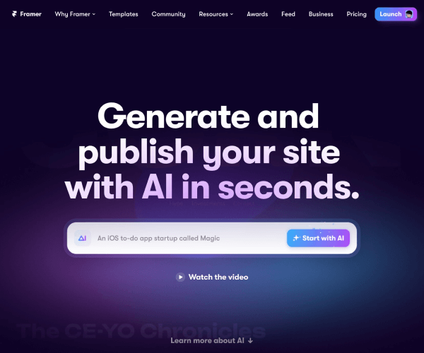 Framer原是一个多合一的网页和移动端原型设计工具,后转型为无代码的网站设计和发布平台,可以帮助用户快速上线高颜值的网站页面。Framer最新推出AI功能,用户只需输入文本描述(支持中文),便可以自动设计、排版、生成和上线网站,目前是免费无限次生成。AI工具集这边测试来看,Framer AI是目前一众AI自动生成网站中效果最好的一批。