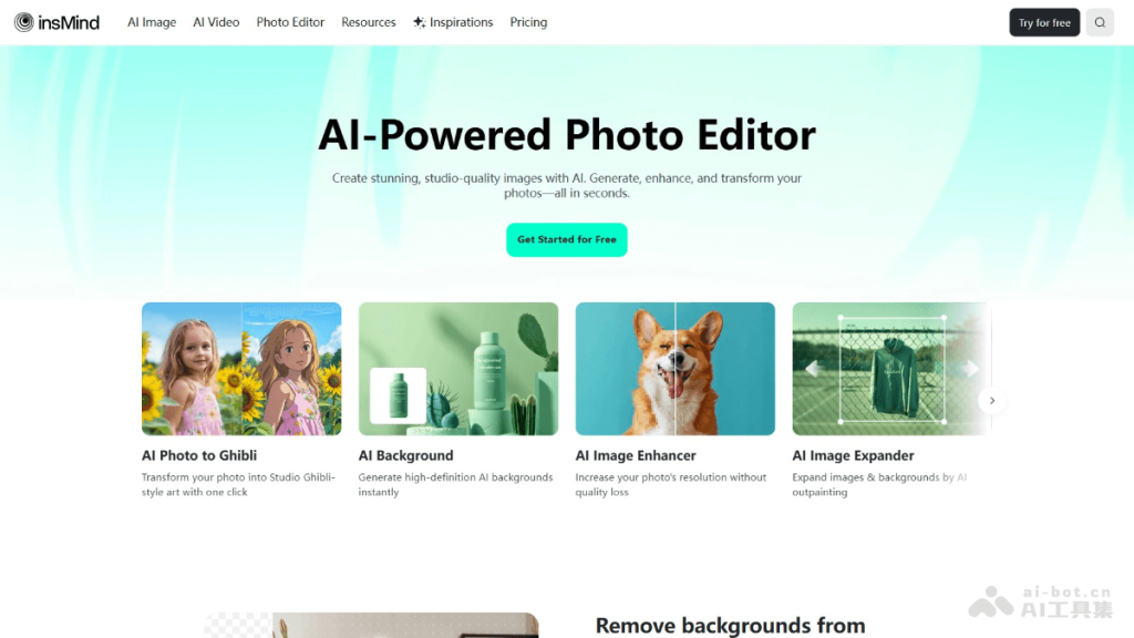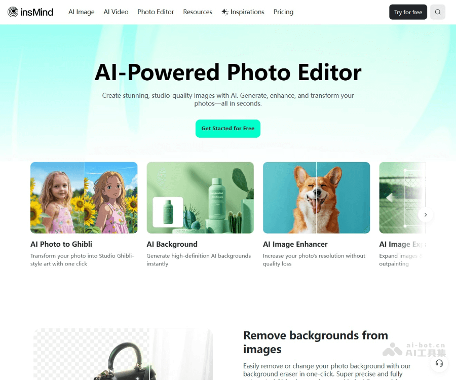 insMind是稿定面向全球市场推出的新一代AI图片编辑工具。insMind提供多样化的编辑功能,如背景移除、图像增强、风格转换等,支持用户一键生成类似作品,简化设计流程。insMind具备批量编辑能力,可同时处理多张图片,提高效率,适合电商、社交媒体和个人创作者使用。insMind有强大的 AI 功能,让非专业人士能轻松制作出专业级别的图像和视频内容。