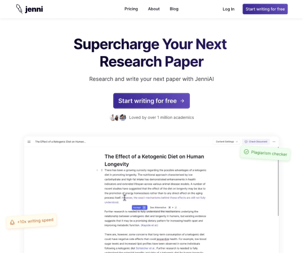 - 抄袭检查:Jenni 具有集成的抄袭检查器,你可以使用该功能检测内容是否已经在线发布。