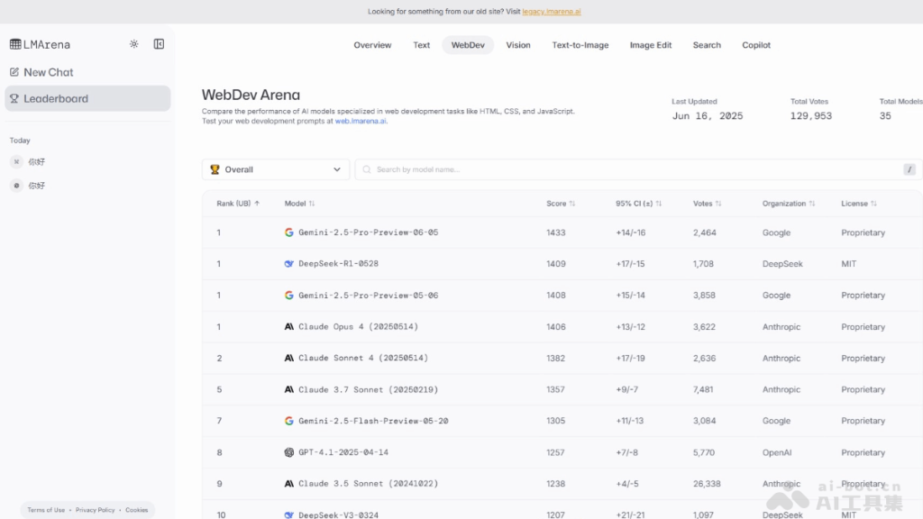 - 公开排行榜:排行榜实时展示AI模型的排名,让用户清晰了解哪些模型表现最好。这种透明性帮助用户选择最适合自己的AI模型。