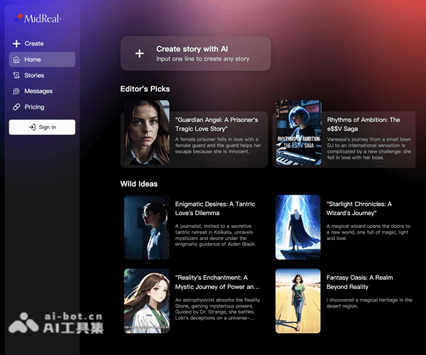 - 生成故事:输入提示后,MidReal的AI将根据用户的输入生成故事内容。