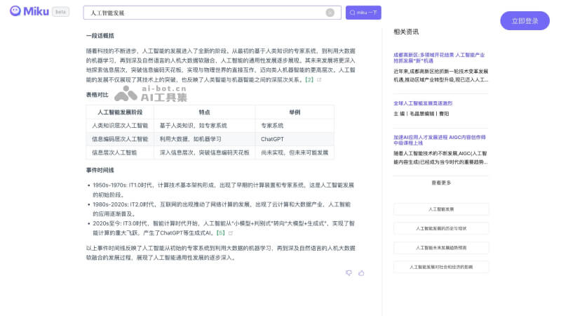 - 结构化信息展示:Miku以结构化的形式展示搜索结果,使得信息条理清晰,便于用户快速获取和理解。