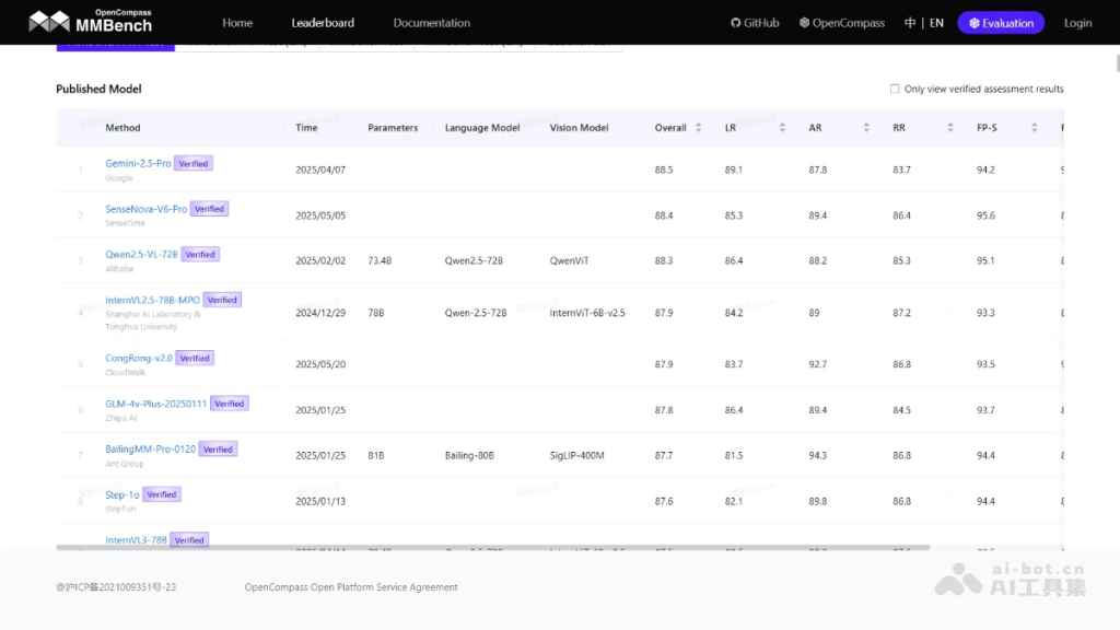 - 基准测试与排行榜:排行榜展示不同模型在 MMBench 数据集上的性能表现,为研究者提供参考。