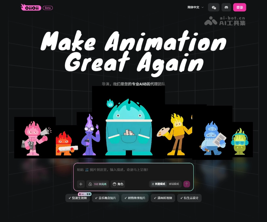 - 一键生成动画:用户输入简单指令或提示词,OiiOii 能快速生成动画短片、视频、图片等内容,降低创作门槛,实现高效创作。