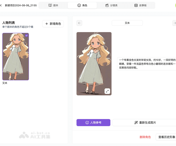 - 角色资产库构建:支持用户通过提示词和人物形象图片,创建个性化的角色库,打造独特的IP形象。