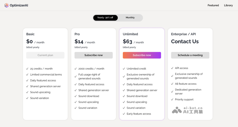 - Basic基础版:免费试用,每月提供25积分、访问每日精选音效、使用共享生成服务器、音效升级、音效变化