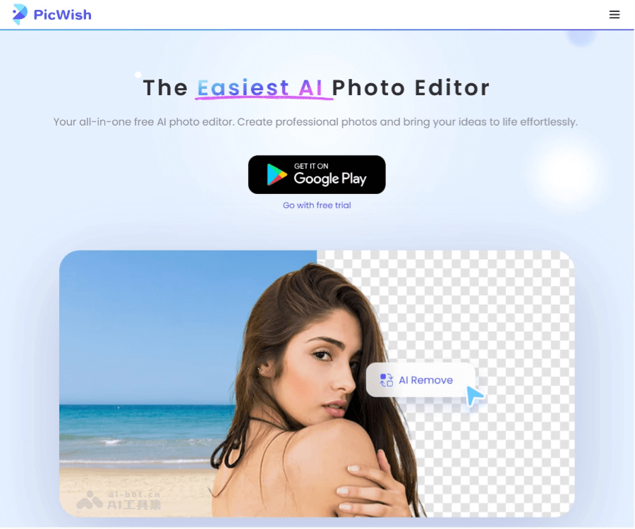 PicWish是AI图像处理工具,为用户提供便捷高效的在线图片编辑服务。具备强大的AI抠图功能,能精准识别并分离图像中的主体,复杂的头发丝等细节能轻松处理。PicWish支持一键删除背景、模糊背景、修复旧照片、无损放大图片、黑白照片上色以及图片转文字等多种功能。操作简单,无需专业技能,用户只需上传图片,通过简单点击完成编辑。