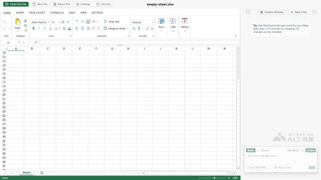 - 新建文件:或直接在界面上新建一个 Excel 文件,开始新的任务。
