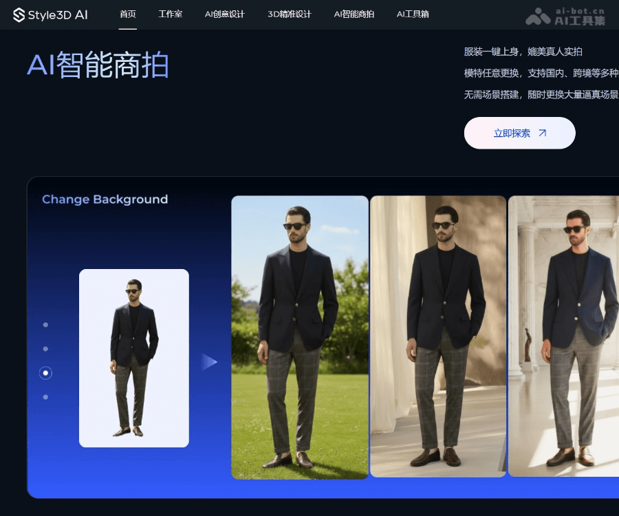 - AI拍摄:提供虚拟模特试穿和背景切换功能,可快速生成多种风格的时尚大片,满足不同市场和营销需求。