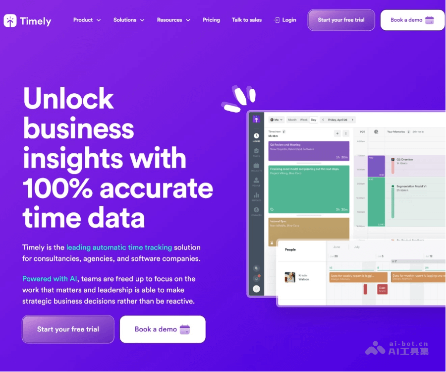 - 开始自动时间跟踪:Timely 自动记录工作活动,无需手动输入。