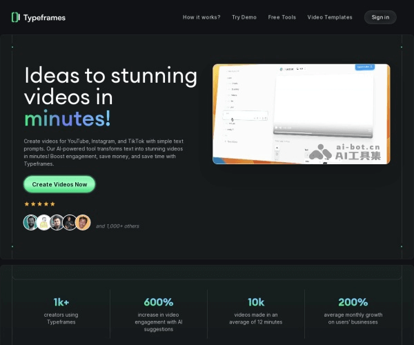 - 访问Typeframes的官网(typeframes.com),点击Create Videos Now然后进行登录注册