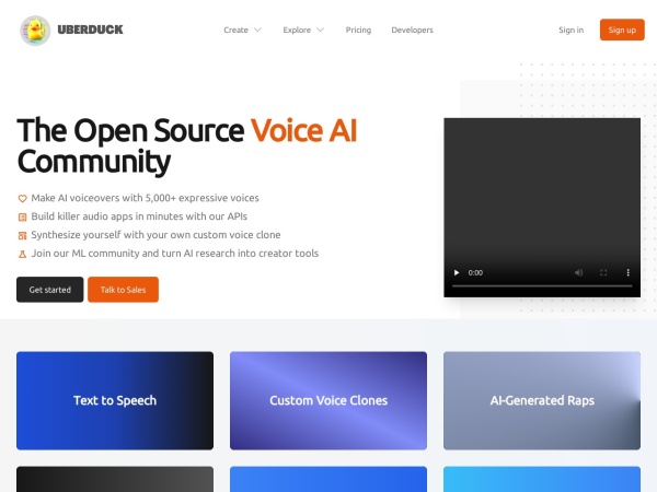 Uberduck是一个开源的AI语音生成和合成的社区,该平台提供了超过5000多种声音帮助用户制作AI配音和语音,用户可以从文本生成逼真的语音、歌唱和说唱,创建自定义语音克隆。支持多种语言,提供API访问,开发者能将这些功能集成到自己的应用程序中。