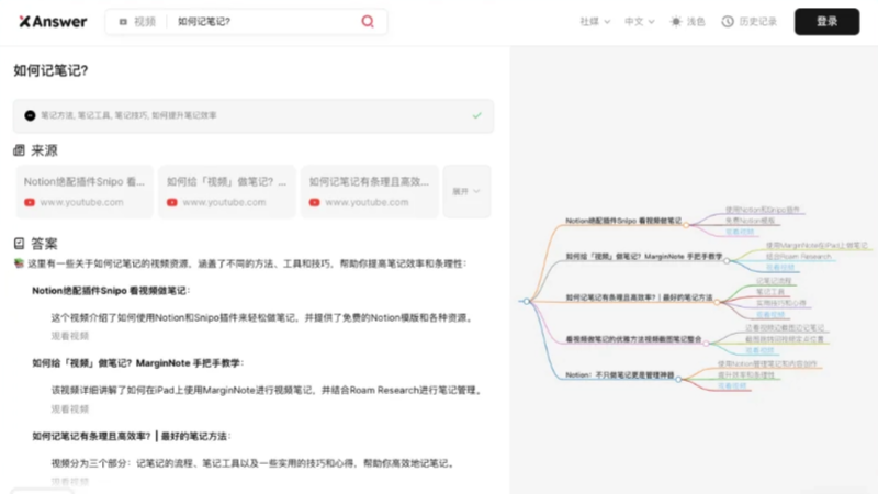 - 查看思维导图:XAnswer会自动生成一个思维导图,帮助你组织和展示信息。
