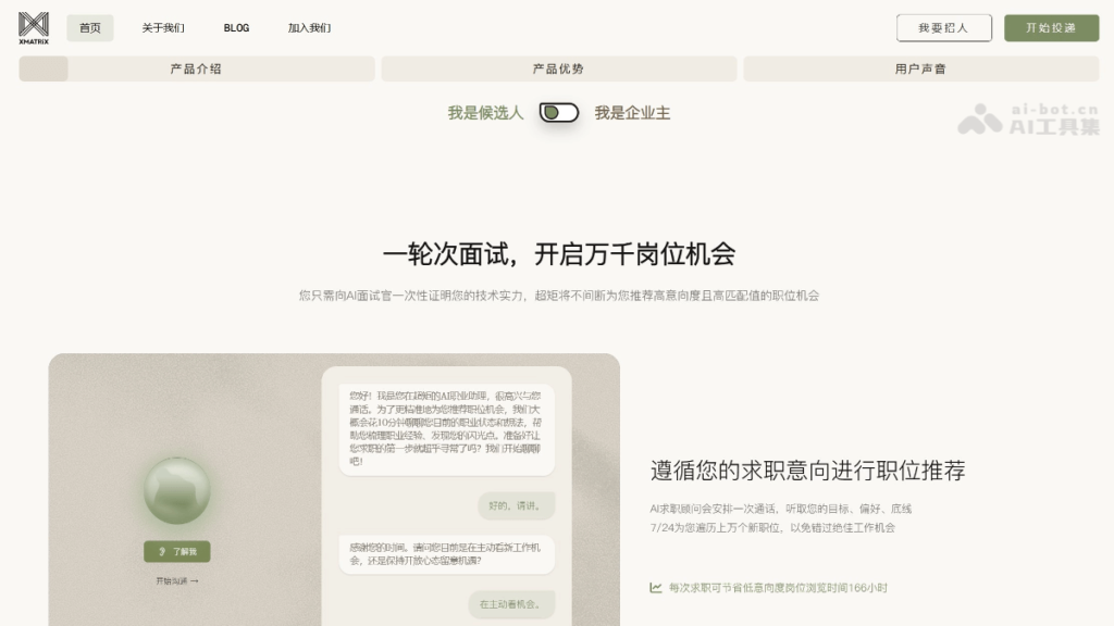 - AI 职业代理:系统持续分析岗位匹配度,自动推送适合的职位机会。